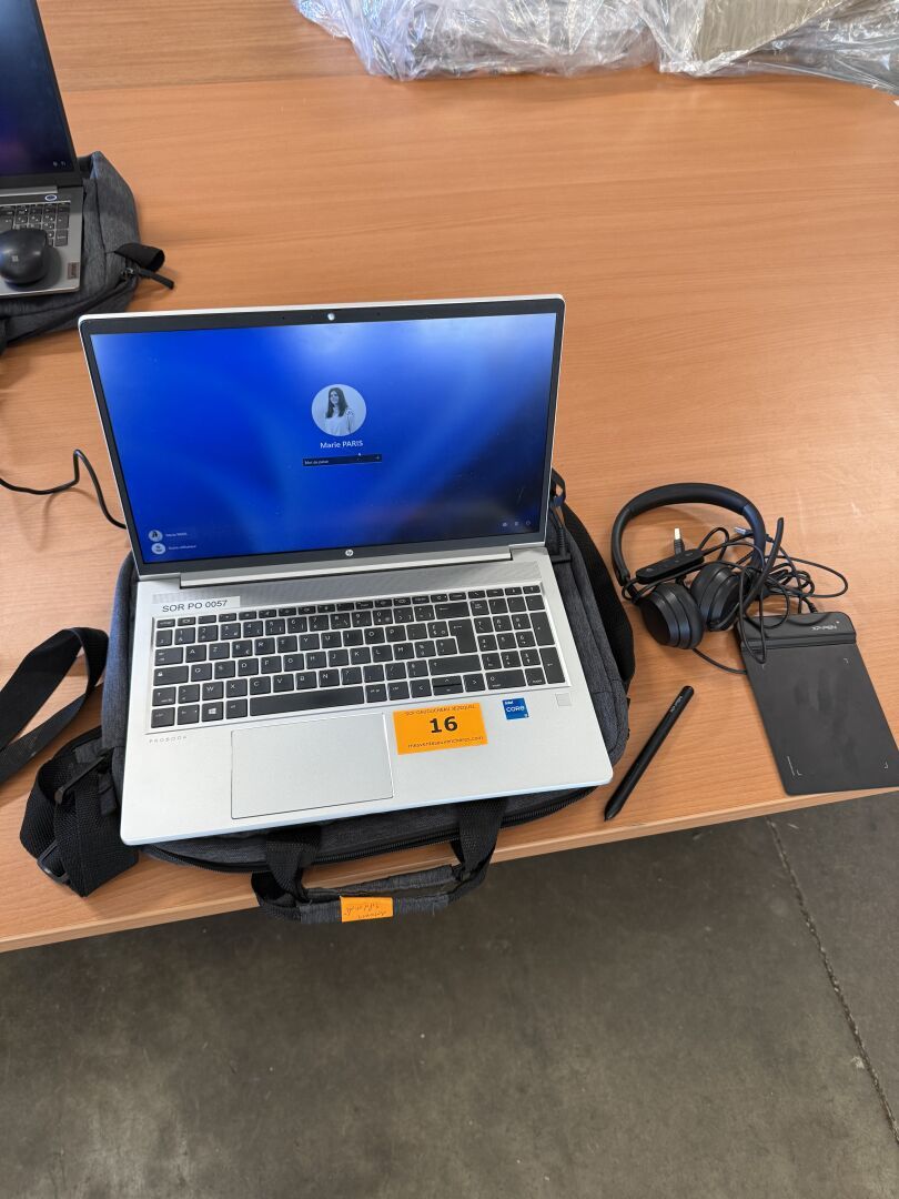 PC portable HP ProBook 450G8 Core 15, n°série donné à titre indicatif:5CD1294VGU, (s'allume, non réinitialisé, mot de passe inconnu) avec sacoche, chargeur, casque micro filaire?