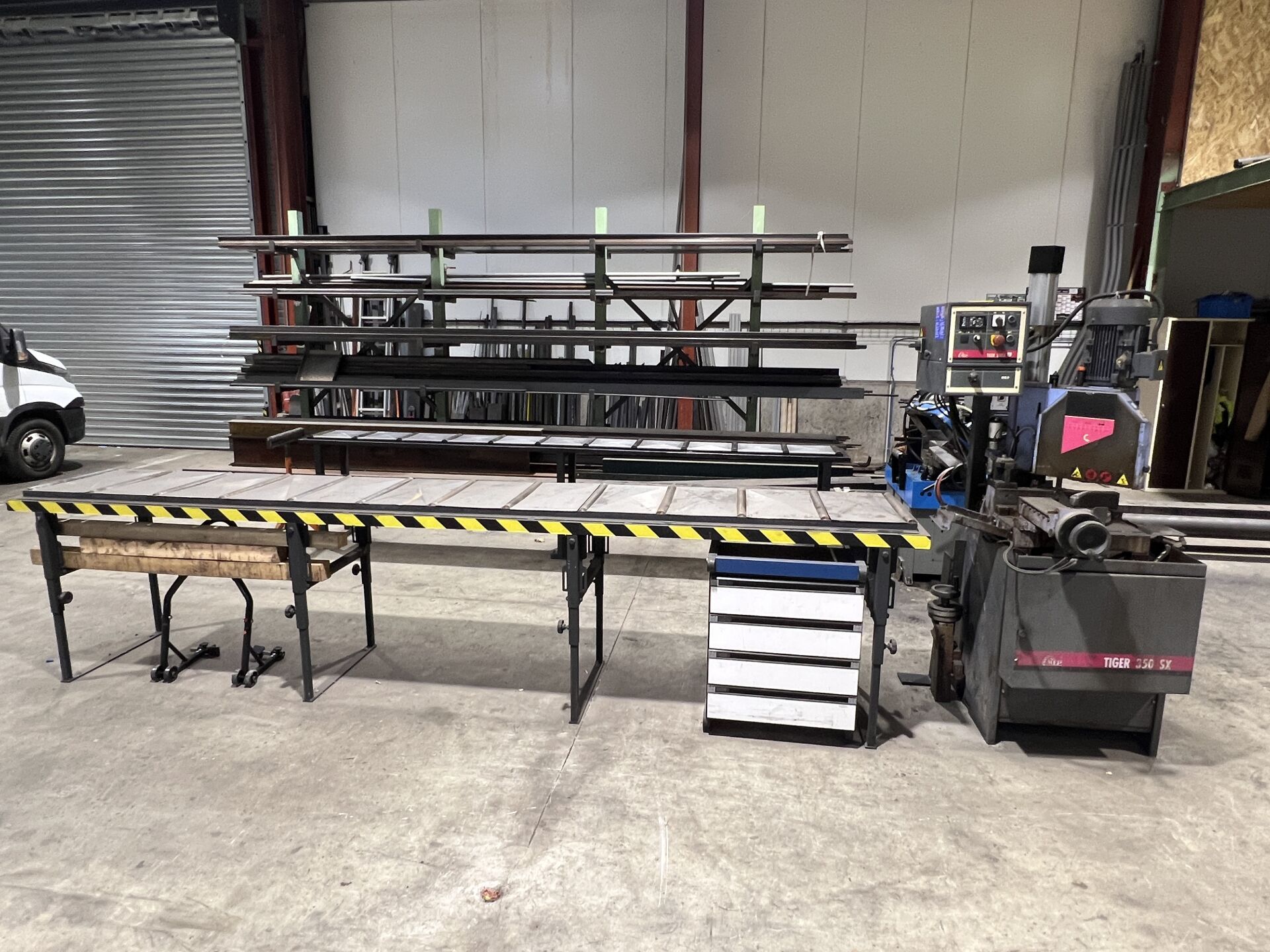 Scie à ruban PROMAC, Scie à panneaux GMC, Poste à souder LINCOLN, Groupe électrogène PROMAC